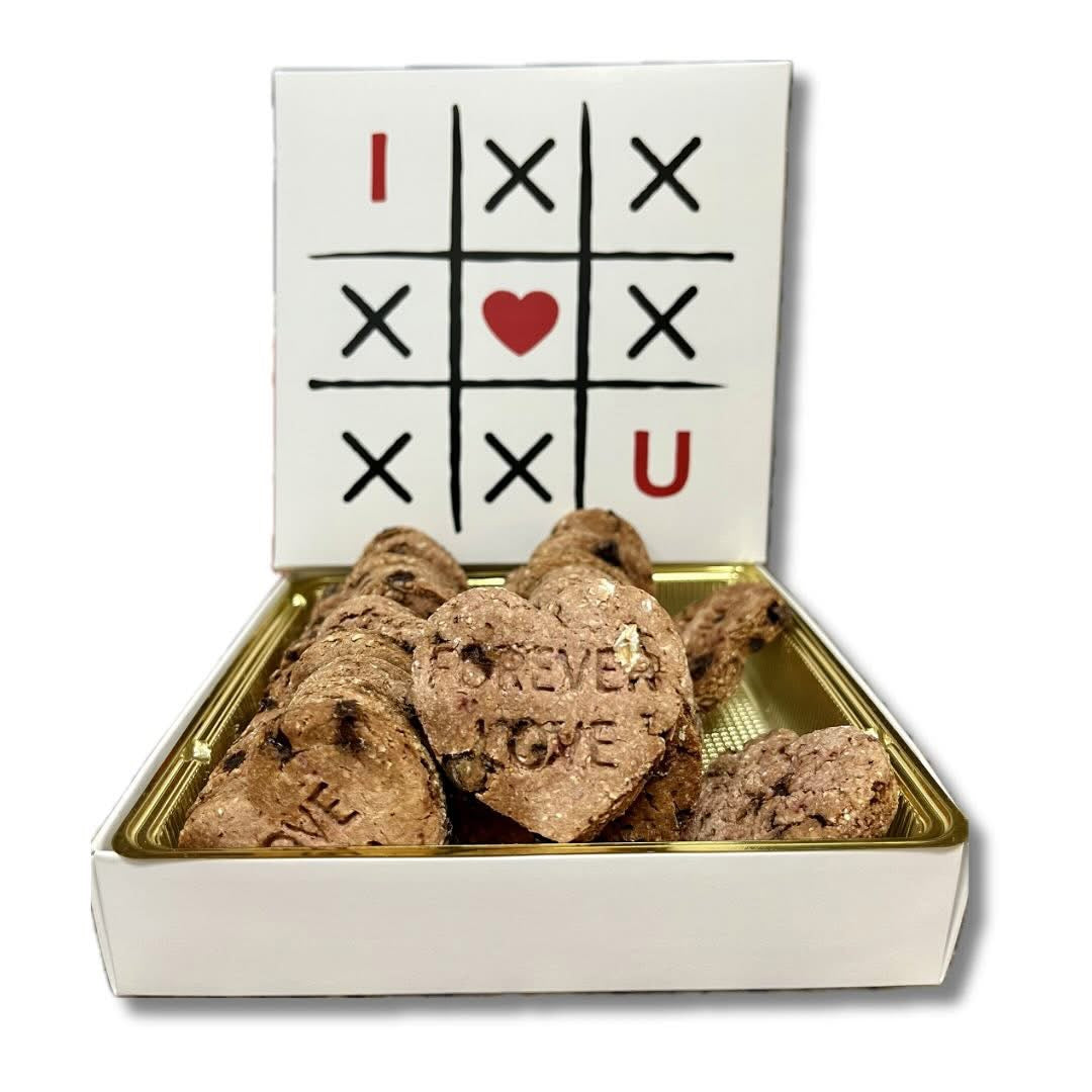Introducing "Paw-colate Covered Strawberries" Dog Treat Box – a delectable delight designed to make your furry friend's heart skip a beat this Valentine's Day! These adorable treats are shaped like the classic candy hearts, offering a charming and irresistible way to show your pup some love.