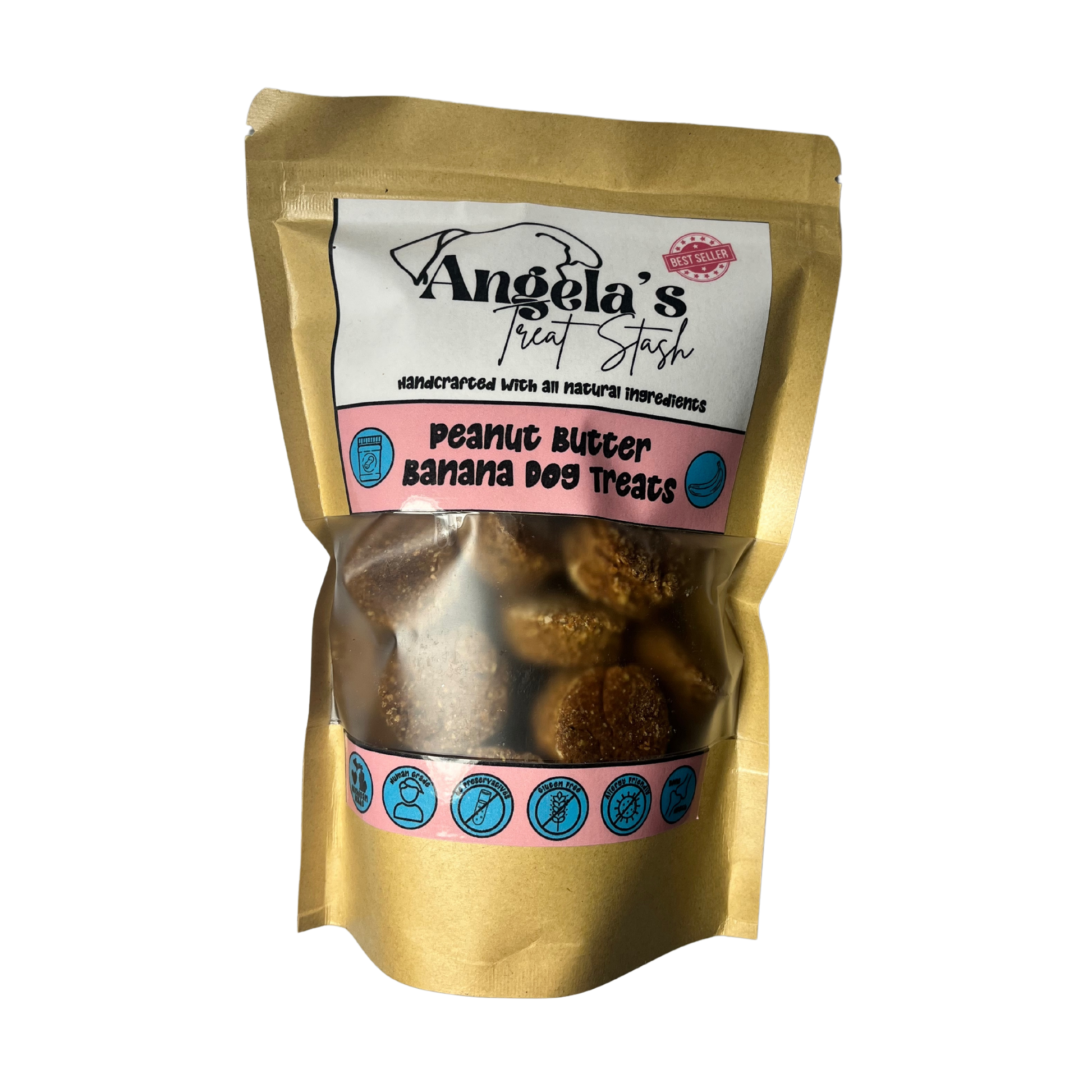 Natural Ingredients: We believe in giving dogs the best, which is why our treats are made with only the finest, all-natural ingredients. We use high-quality peanut butter, ripe bananas, and other carefully selected ingredients to ensure a healthy and flavorful treat for your pup.